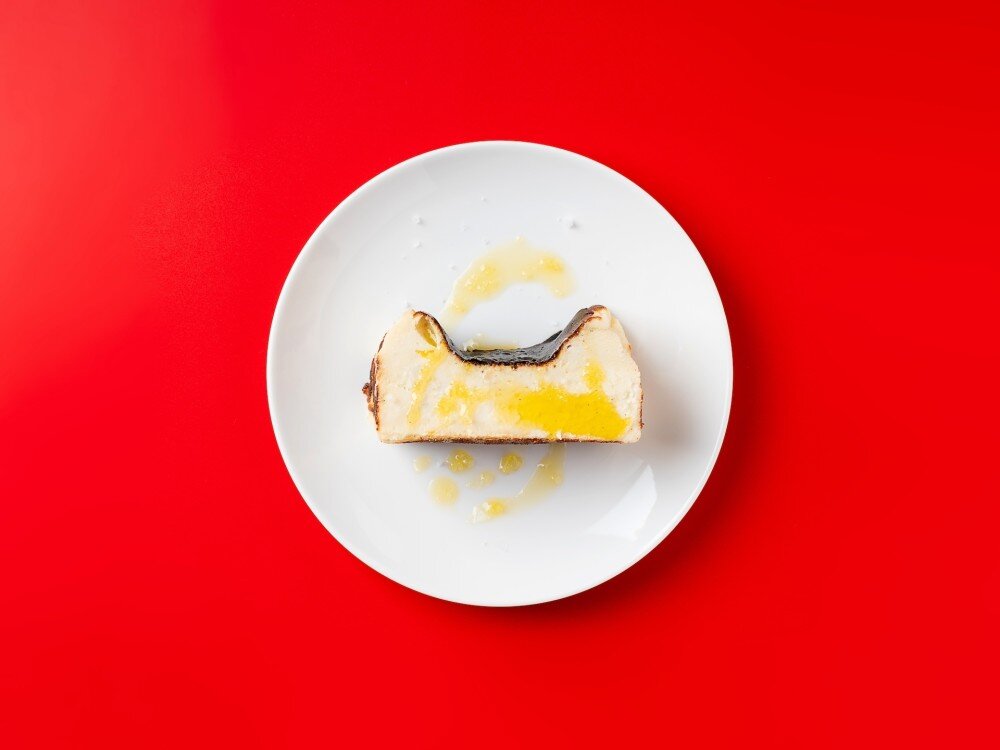 Классический Баскский чизкейк, подаем с оливковым маслом и солью флёр